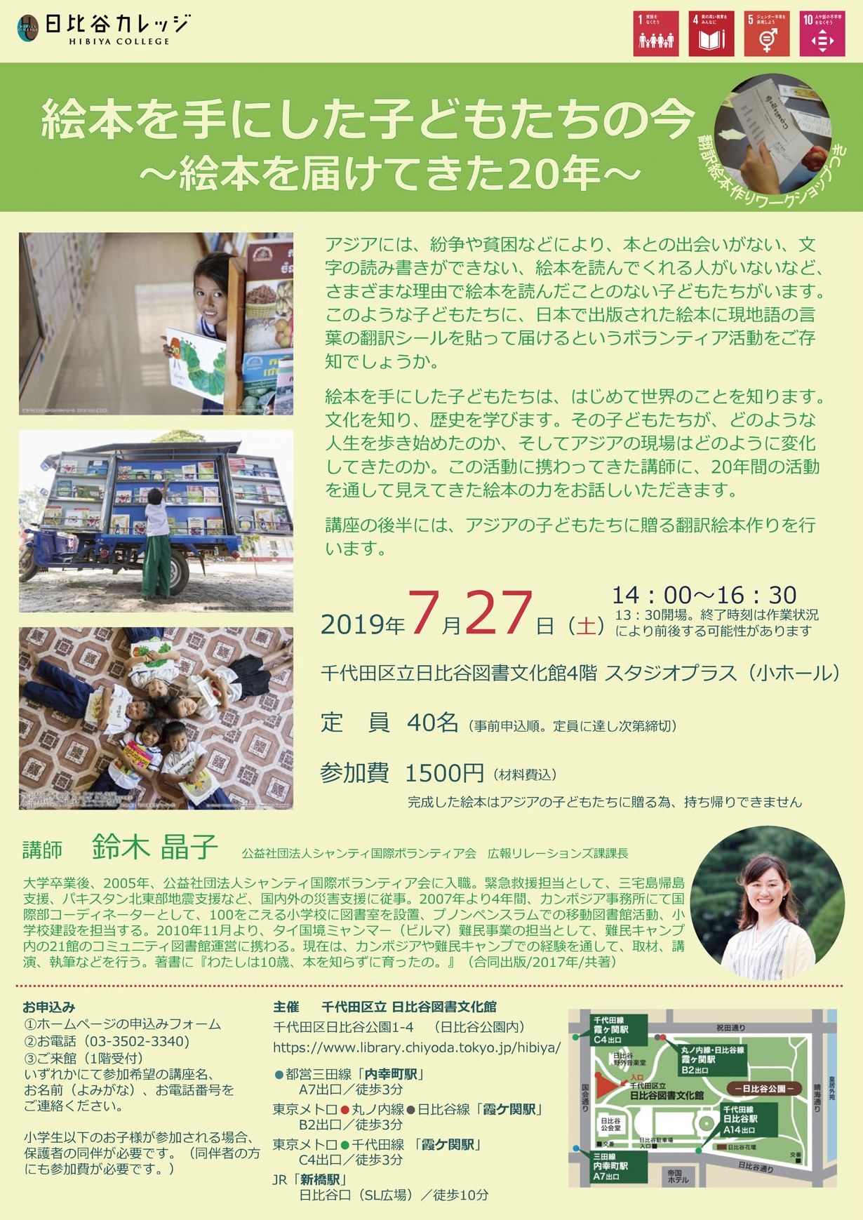 絵本を手にした子どもたちは、はじめて世界のことを知ります。文化を知り、歴史を学びます。その子どもたちが、どのような人生を歩き始めたのか、そしてアジアの現場はどのように変化してきたのか。この活動に携わってきた講師に、20年間の活動を通して見えてきた絵本の力をお話しいただきます。