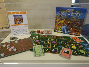 2Fエレベーターホールでは関連展示としてボードゲームと競馬について学べる書籍と「ダービーカジノ」の実物を展示していますので是非ご覧ください。