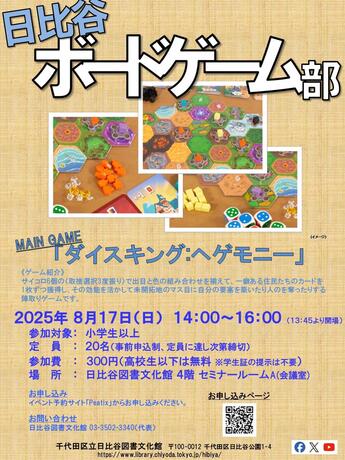 2025年8月17日(日曜日)に日比谷図書文化館にてボードゲームイベントを開催します。