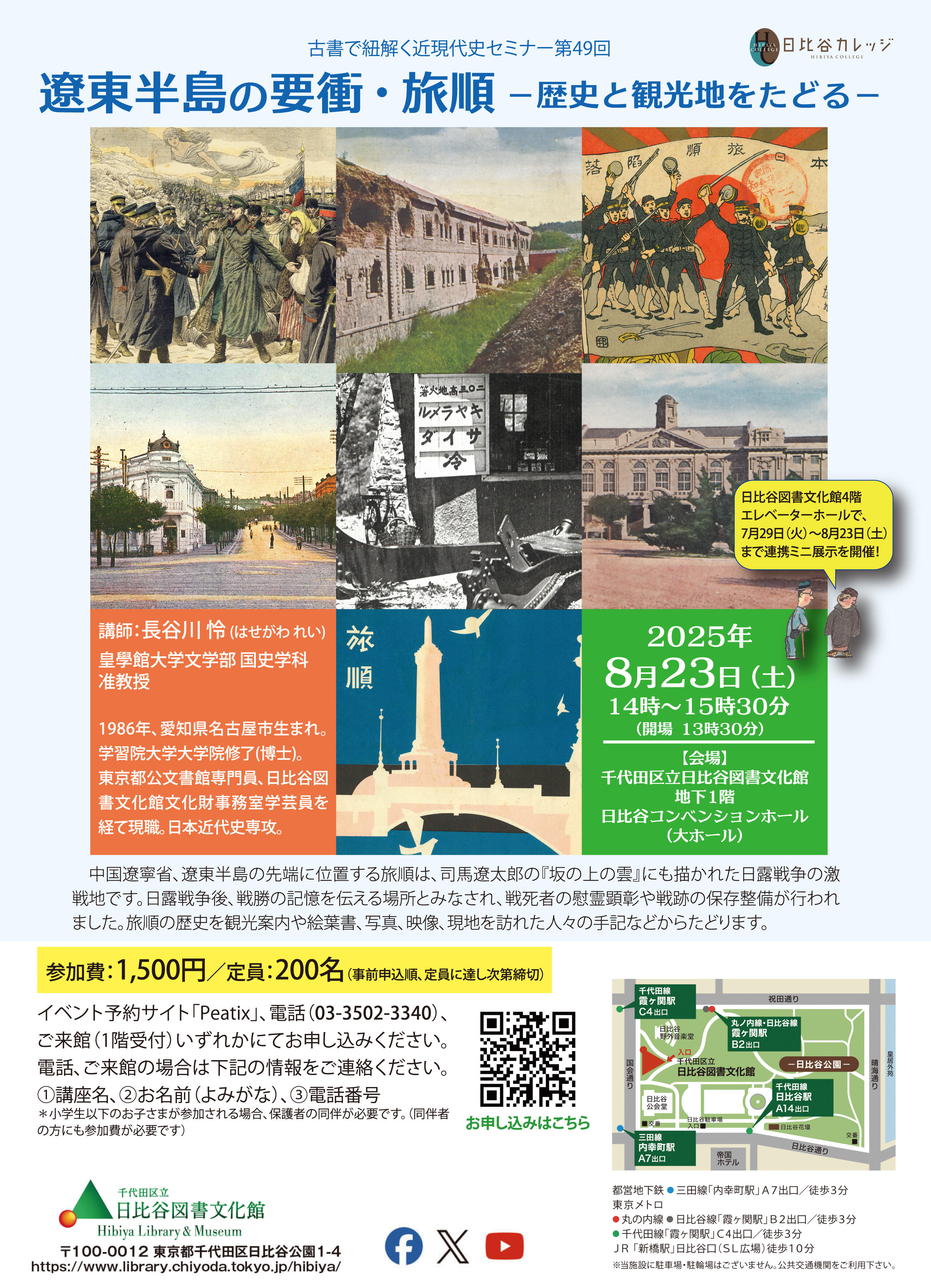 中国遼寧省、遼東半島の先端に位置する旅順は、司馬遼太郎の『坂の上の雲』にも描かれた日露戦争の激戦地としてよく知られています。日露戦争後、旅順は戦勝の記憶を伝える場所とみなされて、戦死者の慰霊顕彰や戦跡の保存整備が行われ、多くの観光客が訪問しました。近代日本における旅順観光の歴史を観光案内や絵葉書、写真、映像などから紹介するとともに、現地を実見した人々がのこした手記を読み解き、この地が当時の日本人の心性にどのような影響を与えたのかを考えます。