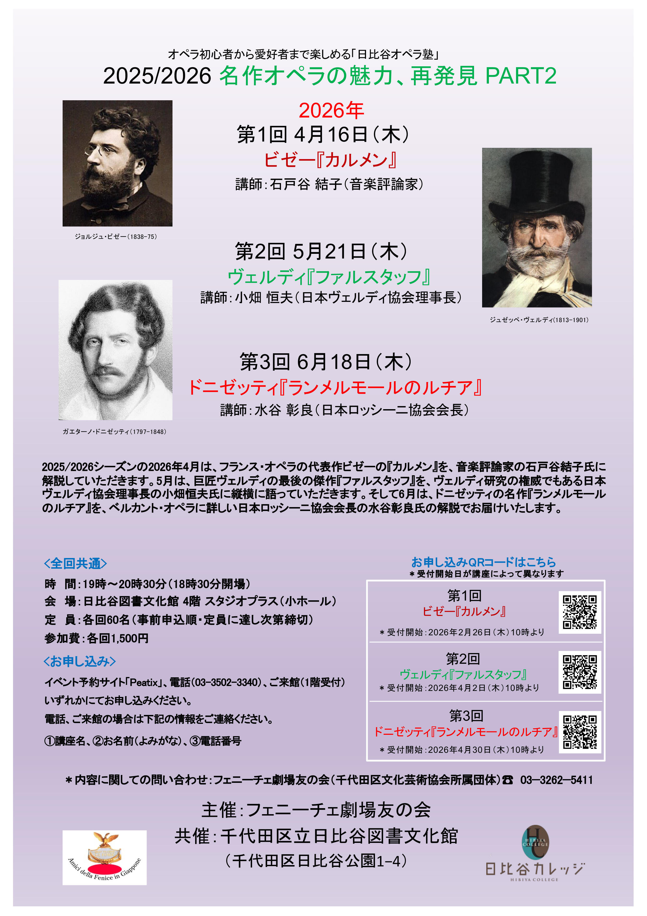 【受付終了】 日比谷オペラ塾「名作オペラの魅力、再発見PART2」(全3回)